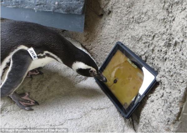 بالصور بطاريق كاليفورنيا تلعب ب الاي باد