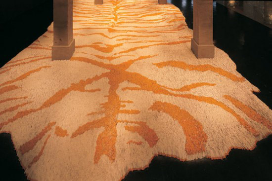 بالصور فنان يصنع سجاده على شكل نمر من نصف مليون سيجاره