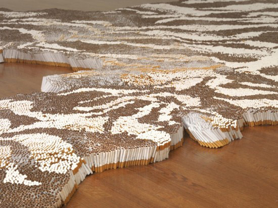 { يصنع سجادة على شكل نمر من نصف مليون سيجارة