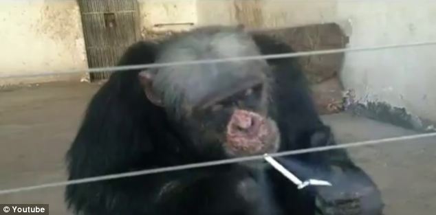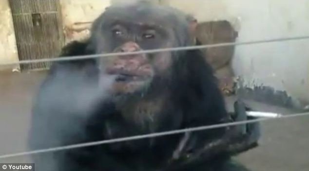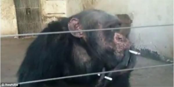 شمبانزي مدمن على التدخين