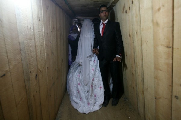 بالصور : شاب يتزوج داخل احد انفاق مدينة رفح