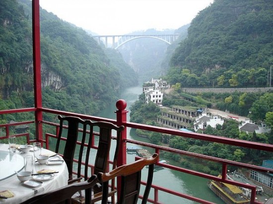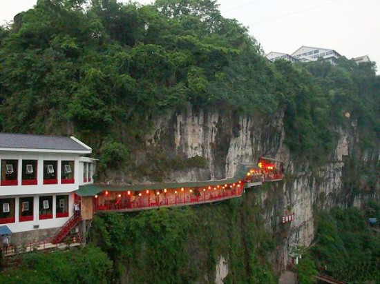 - في إطار البحث عن كل ما هو جديد ومغامر، قام مُلاك مطعم في الصين، بتشييده أعلى جرف في مدينة 'تشانغ يانغ' دون أعمدة، على شفا كتلةٍ صخريةٍ خطيرة، حيث تمّ تعليقه في الهواء. وحسب صحيفة 'الوطن' الكويتية، قال موقع 'أوديتى سنترال'، إن مطعم 'فانغ وينغ'، يعد أخطر مطعم في الصين، ورغم ذلك فإن المنظر الرائع للمطعم يدفع الناس من كل حدب وصوب إلى التوجّه إليه، والتمتع بتناول وجبة ساخنة بعد رحلة عناءٍ طويلةٍ يقطعونها في الوصول إليه، وخاصة عشاق هواية تسلق الجبال. ويتكون مطعم 'فانغ وينغ' من جسر طويل وصالة رئيسة ومطبخ واحد مسؤول عن إعداد وتقديم الطعام لكل مَن يصلون إليه عن طريق الطائرة أو من خلال تسلق الجبل، ويمتد على طول 30 متراً على شفا الجبل، مثيراً الذعر والخوف لكل من يذهب اليه. http://www.sarayanews.com/image.php?...5c4ea12f&size= http://www.sarayanews.com/image.php?...11812107&size= http://www.sarayanews.com/image.php?...11812107&size= http://www.sarayanews.com/image.php?...3adbd6c9&size= |