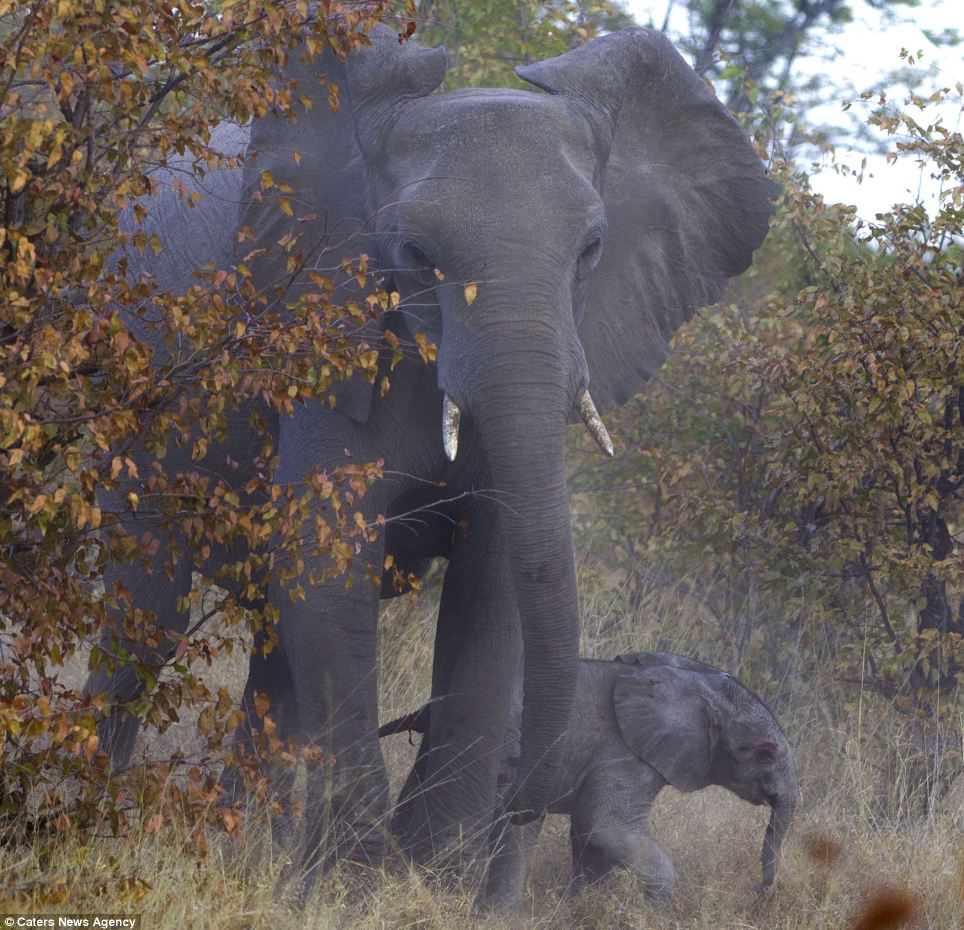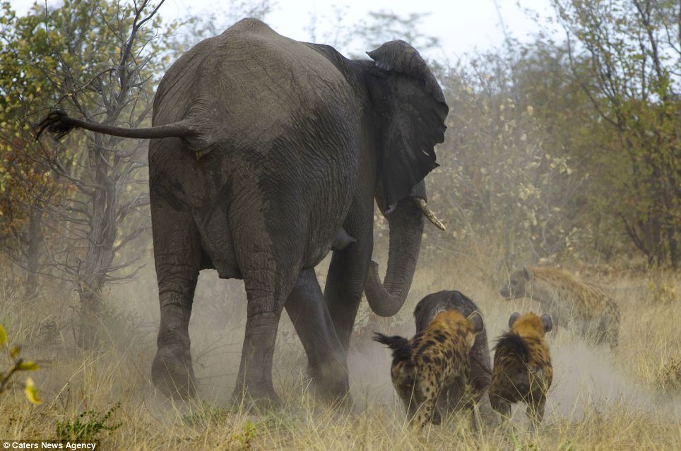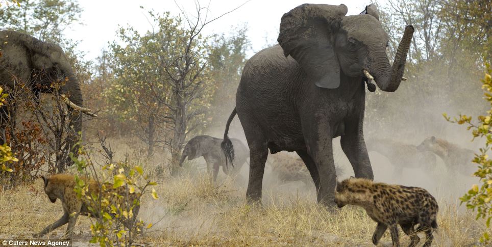 امومة الفيله تتحدى انياب الضباع لحمايه رضيعها